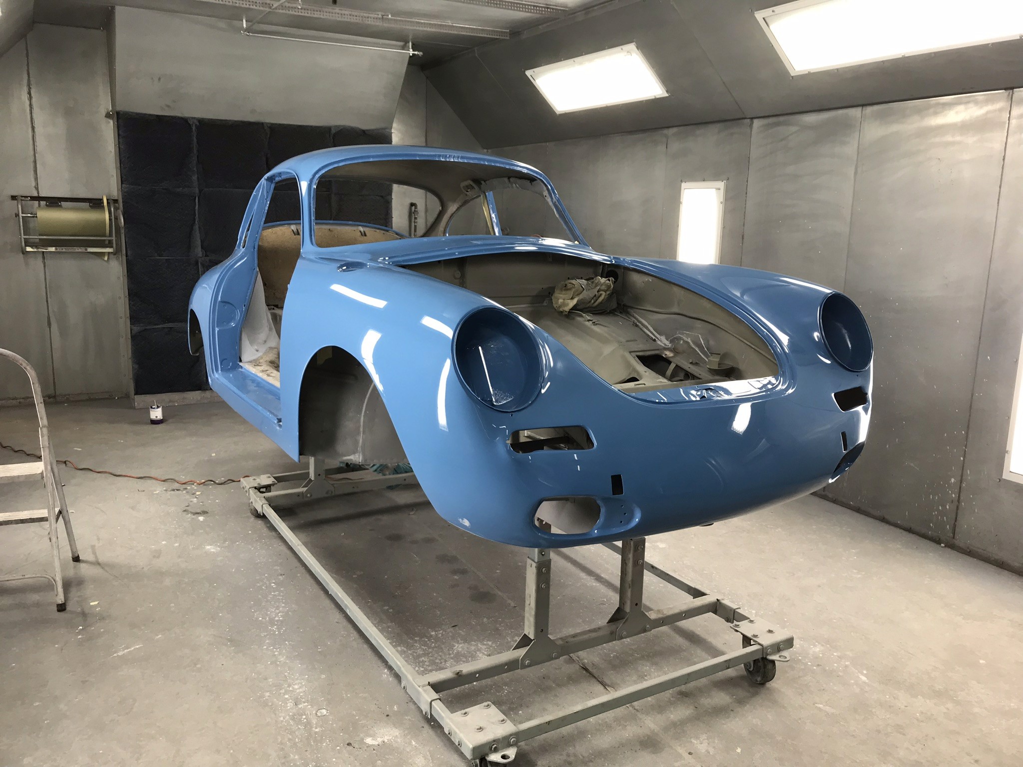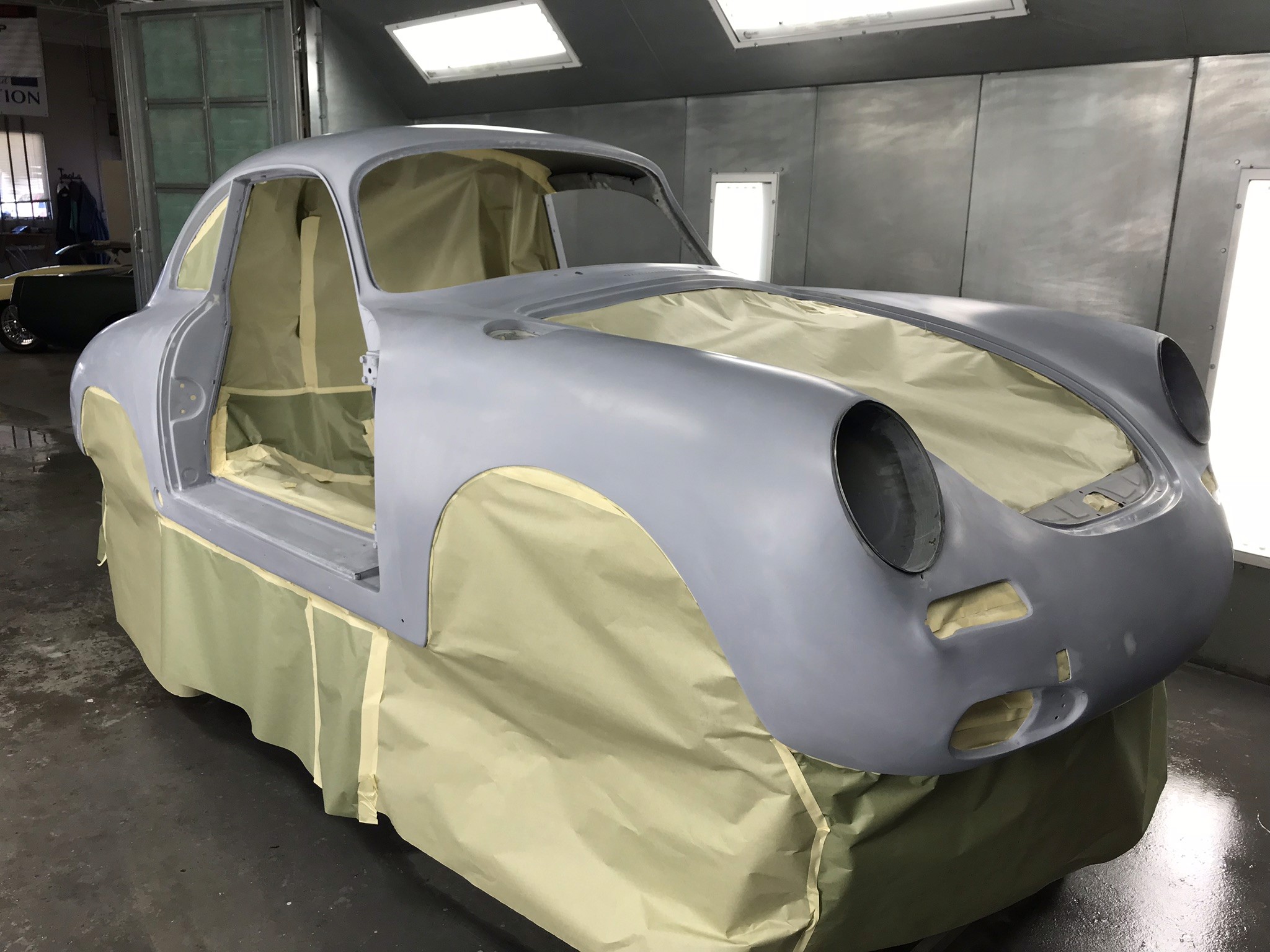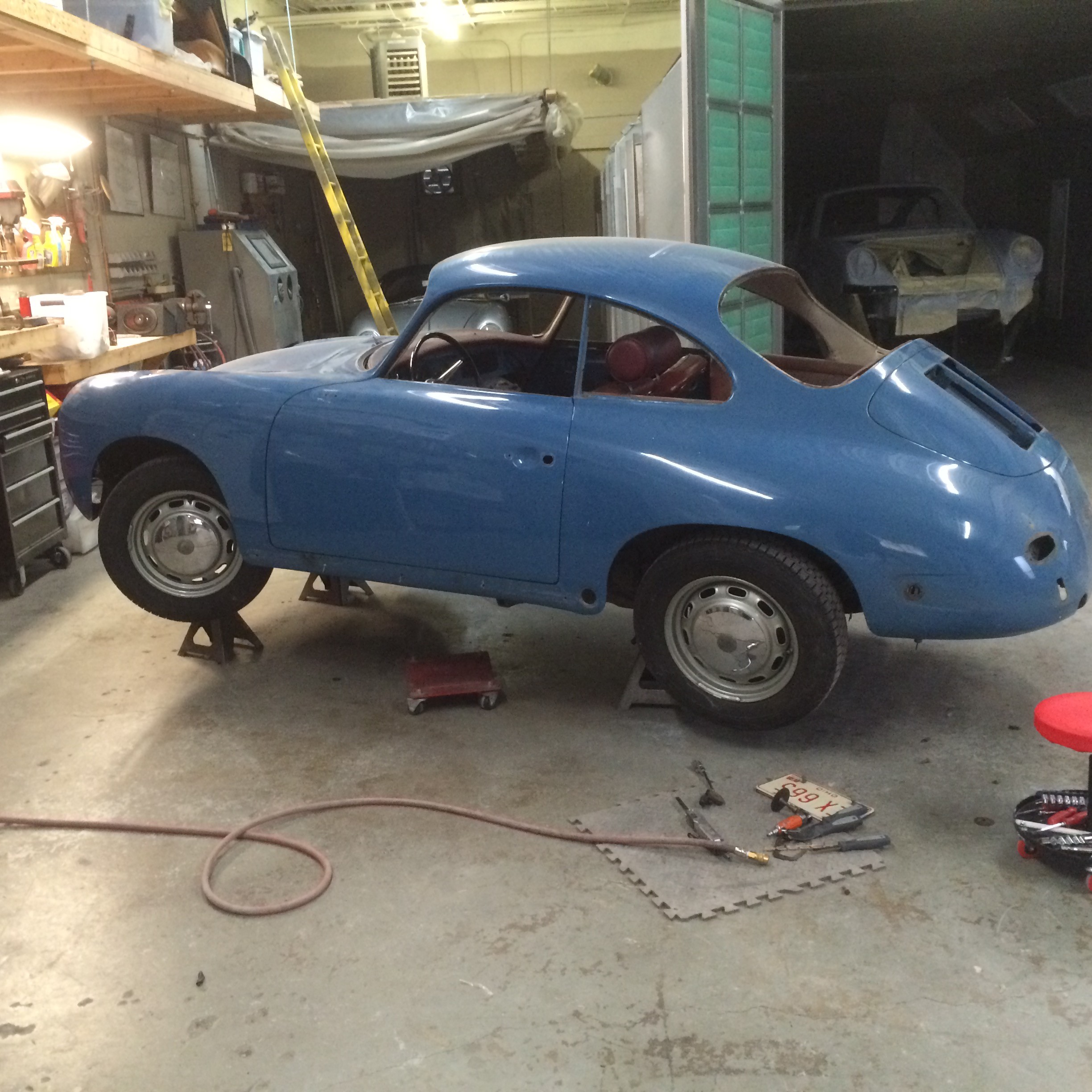 We received the car as a complete vehicle and handled the full disassembly in-house. Once stripped to a bare shell, we took it down to bare metal to identify problem areas. As expected with a '64, there was rust in all the typical spots: front end, floor pans, door bottoms, battery box and fender repair areas. All rusted sections were cut out. Replacement panels were sourced from Stoddard where possible, and others were fabricated in-house. Even the headlight bucket assemblies required reworking. Once all metalwork was completed, we focused on achieving proper panel fit and flushness. After stripping, the car was mounted on a frame jig to ensure it was square before we addressed structural components. From there, we moved on to sheet metal—doors, rockers, etc.—and refined all panel gaps. With the metalwork finalized, we proceeded through bodywork, primer, and paint. We then did initial lid and panel assembly before handing the project off. Final assembly and interior work were completed by Air Cooled Auto, who handled exterior trim, gauges, and interior fitment. Rick Bennett performed the drivetrain restoration.