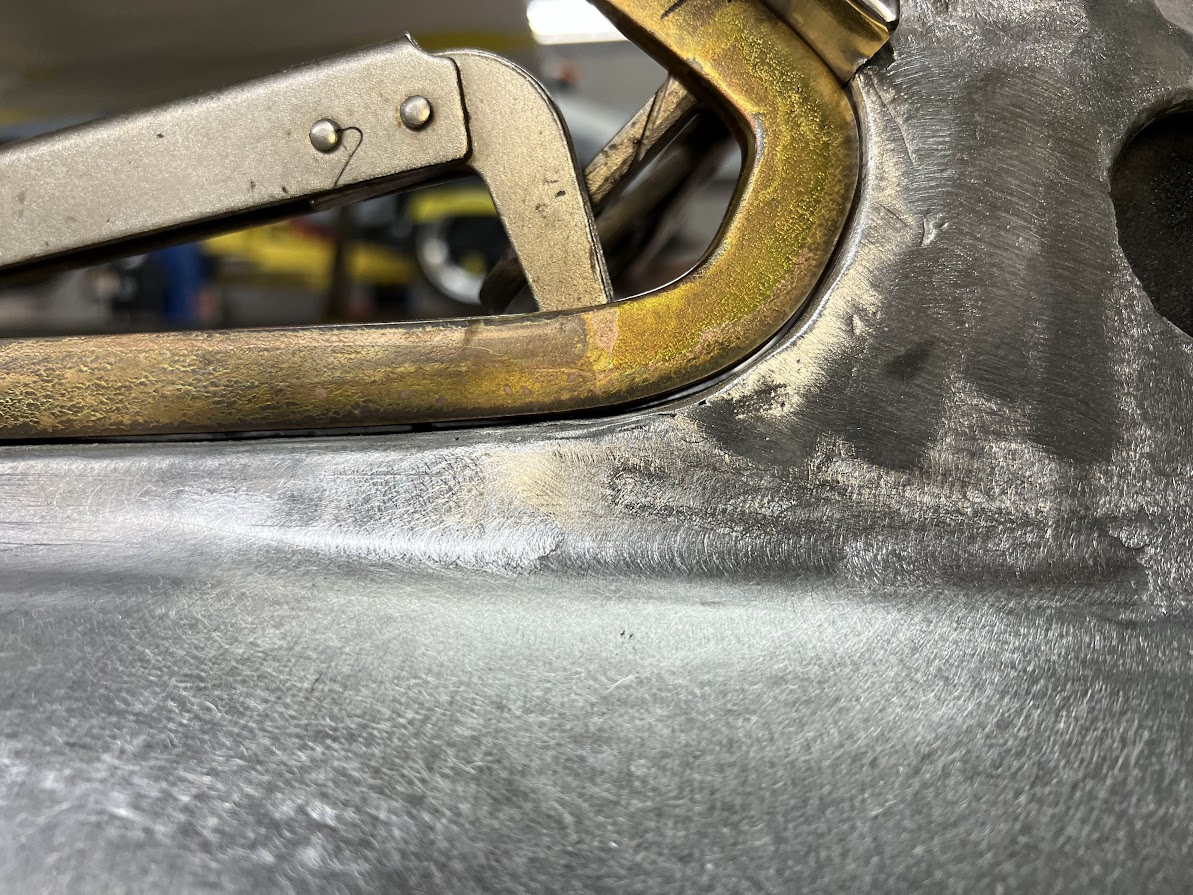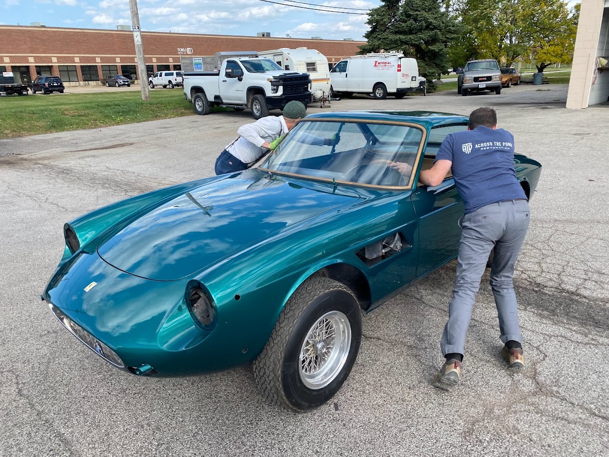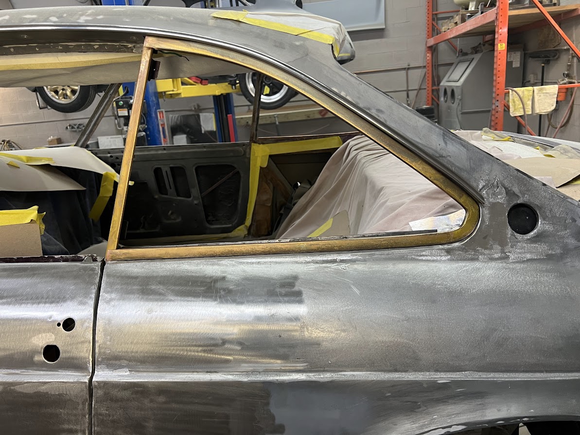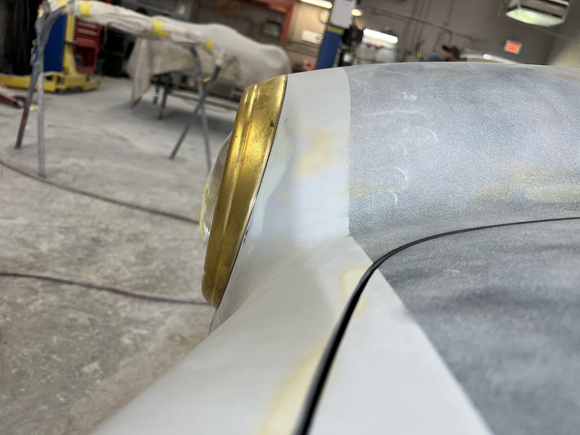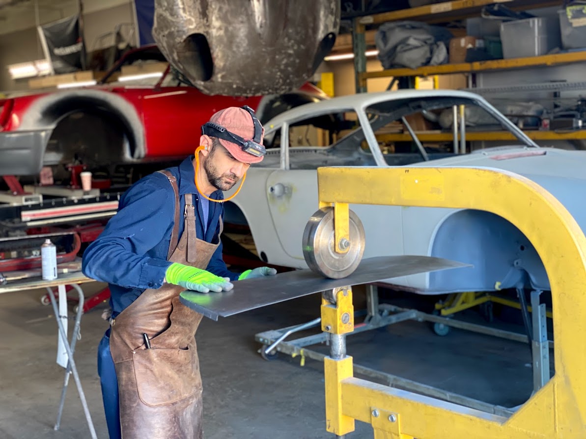 We received the 1967 Ferrari 330 GTC from Randy at R&R Automotive Restorations. The car had been repainted at some point, so we stripped it down to bare metal. Randy had left several notes on areas he wanted improved—tightened panel gaps, better fitment, and metalwork corrections. One of the major tasks was the driver's side door. The entire door was in poor condition, so we fabricated a new doorskin using the English wheel and welded it in. We also had to rebuild the hinge assembly and lead the door gaps for a proper fit. This car required extensive leadwork. Due to the hand-built nature of the coachwork, the components were highly inconsistent—quarter windows, bumpers, trim—all needed adjustment. We reshaped and fit the bumpers individually, as the left and right sides were not symmetrical. Each bumper was shaved and contoured to match the body exactly. We also ensured proper fitment of all glass, headlights, side vent trim, and the front grille. Once all metalwork and leadwork were completed, we painted the car. To verify proper fit, we pre-assembled all components—including door handles, window frames, headlights, and trim—prior to plating and chroming, ensuring tight and consistent gaps. After bodywork and paint were complete, the car returned to Randy for mechanical sorting and final interior work.